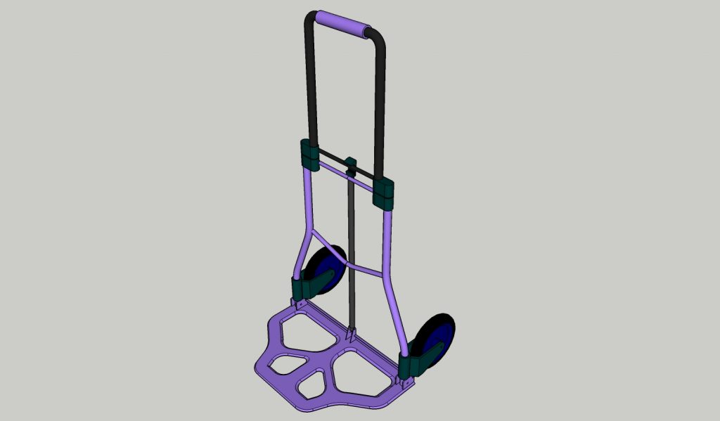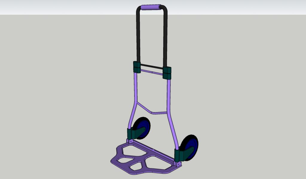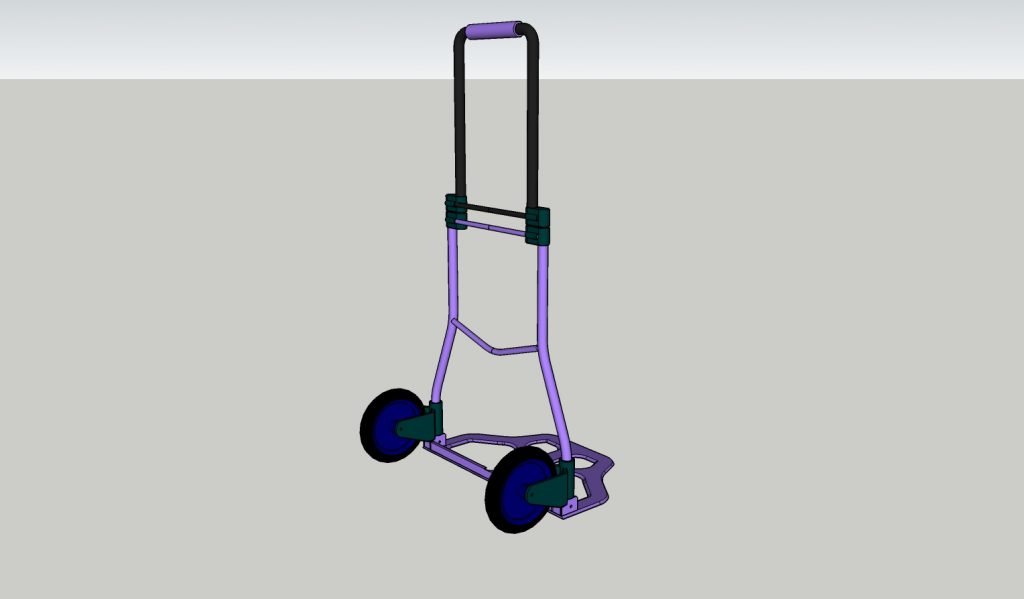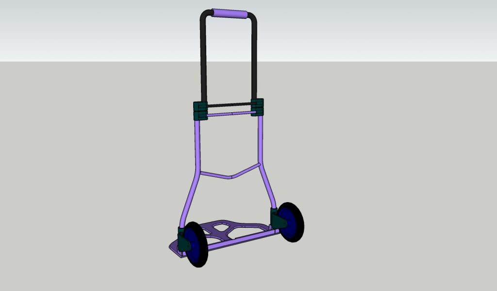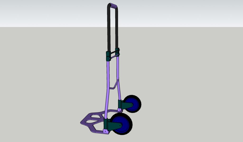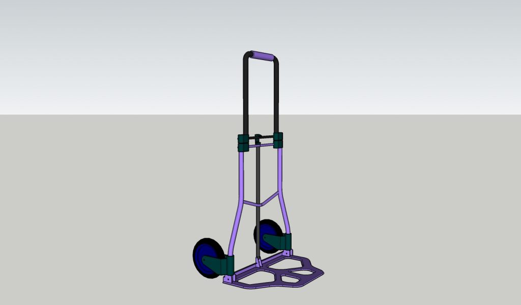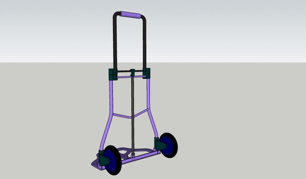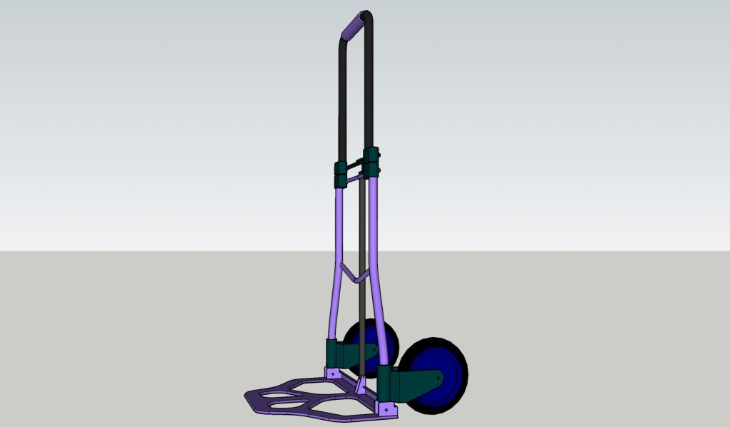 So, now having decided on the product range, I formed a design idea for the lugger. It would be a hand cart with very few movable joints, and constructed using materials that a metal fence producer would have at hand. The only complexity in the build would be the wheels. These would need to “researched”. Refer to the diagrams below for a pictorial representation of the lugger. I also have a Google Sketchup 3rd model, email me if you want it.